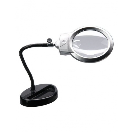 Настольная лупа с LED подсветкой широко применяется в радиомонтажных и ювелирных мастерских, в косметологических кабинетах, при работах с документами, в бытовых целях - для чтения, рисования, шитья, вышивания и т. д. Имеются две линзы: основная (диаметр 107 мм) с увеличением 2,25 крат и дополнительная (диаметр 25 мм) с увеличением 5 крат. В качестве подсветки используются 2 ярких светодиода, питание осуществляется от двух батареек типа ААА (в комплект не входят). Гибкая штанга (длина 25 см) позволит точно установить лупу на удобном для наблюдения расстоянии. В пластиковом корпусе основания находится металлическая вкладка, в которую вкручивается штанга - для долговечной эксплуатации и предотвращения опрокидыванию. Также имеется лоток для мелких принадлежностей.