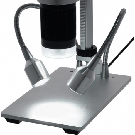 Микроскоп с дистанционным управлением Levenhuk DTX RC1 – это не только отличные оптические возможности, но и новый уровень удобства управления. Для работы с прибором можно использовать кнопки на корпусе или беспроводной пульт. Микроскоп станет отличным помощником в ремонте электроники, оценке ювелирных изделии и диагностике поломок часовых механизмов. Он также пригодится для проведения презентаций и лекций. За формирование изображения отвечает объектив, дальше картинка выводится на цветной встроенный ЖК-экран. Его диагональ составляет 4,3 дюйма (приблизительно 11 см). Также картинку можно вывести на внешний экран, для чего понадобится подключить микроскоп к компьютеру и использовать одну из популярных программ захвата изображения. Образцы можно изучать на увеличении от 3 до 220 крат (диапазон оптического увеличения: 3–55 крат). Кроме того, все исследования можно записывать на карту памяти (приобретается отдельно) в фото- или видеоформате. Качество записи высокое – Full HD для видео и 12 Мпикс для фото. Подсветка предметного столика реализована очень интересно. Во-первых, есть светодиоды внутри объектива. Во-вторых, две лампочки закреплены на гибких держателях, которые можно поворачивать под разными углами. Такое сочетание источников освещения позволяет выставлять свет максимально точно и удобно для наблюдений. Яркость подсветки можно регулировать. Для управления микроскопом можно использовать кнопки на корпусе или дистанционное управление. Один управляющий элемент расположен на кабеле питания – переключатель позволяет регулировать яркость подсветки двумя кнопками и отвечает за включение/выключение прибора. Есть и беспроводной инфракрасный пульт. Его функции: уменьшение и увеличение кратности, фотографирование, запись видео. Этот пульт незаменим в ситуациях, когда важно сделать четкий кадр: любое лишнее прикосновение к микроскопу может сбить настройки оптики, а пульт позволяет вести съемку со значительного расстояния. Основные особенности: Доступно оптическое и цифровое увеличение. ЖК-экран передает цветное изображение. Можно фотографировать и записывать видео в высоком разрешении. Картинку с объектива можно передавать на экран компьютера. Подсветка представлена светодиодами на гибких держателях и внутри объектива. Для управления можно использовать беспроводной пульт. Комплектация: микроскоп с ЖК-экраном, инфракрасный пульт дистанционного управления, ультрафиолетовый фильтр, кабель питания с переключателем и регулятором яркости подсветки, кабель USB, сетевой адаптер, батарейка CR2025, стикер 3М, инструкция по эксплуатации и гарантийный талон.