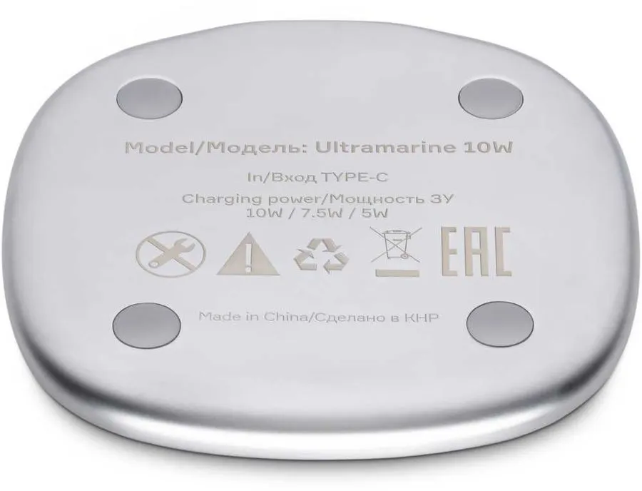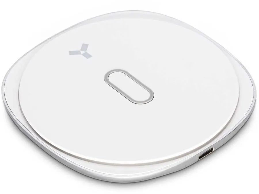 Изящная беспроводная зарядка будет прекрасно смотреться как дома, так и в офисе. Корпус целиком выполнен из металла, устройство поставляется в белом цвете. Зарядка выдаёт мощность 10 Вт, этого достаточно для быстрой зарядки смартфона или другого устройства, поддерживающего протокол Qi.
