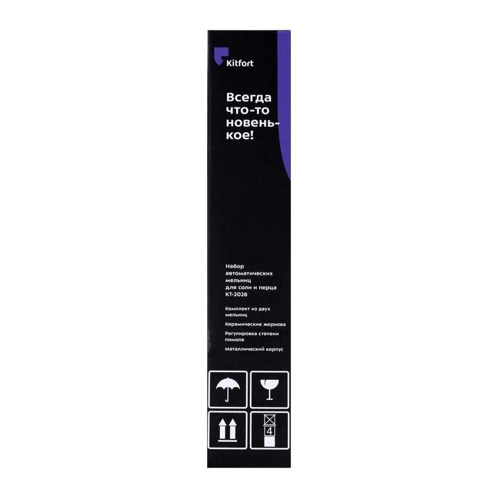 Набор мельниц Kitfort KT-2028 измельчает перец-горошек, соль и другие специи. Нет нужды молоть специи впрок. Мельница одновременно мелет и дозирует. Поместите её над блюдом и просто нажмите кнопку. Степень помола легко регулируется винтом. Регулируйте степень измельчения приправы для каждого блюда индивидуально. Мельница удобно лежит в руке, включается одной кнопкой и работает от 4 батареек типа АА, которых хватает на долгое время.