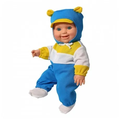 Малыш Весна 7 - милый и обаятельный карапуз. Игры с таким пупсом помогут сформировать у вашего ребёнка чувство ответственности, навыки заботы о младших. Малыша так и хочется взять на ручки и позаботиться о нём. Комплект одежды состоит из трикотажного комбинезона, шапочки из трикотажа с козырьком и ушками, трикотажной майки и носочков. Игровые возможности куклы: благодаря небольшому размеру и продуманной конструкции эту куклу легко и удобно брать в руки, её можно сажать, укладывать спать, переодевать. Куклу можно купать, так как у неё вставные незакрывающиеся глазки, рельефный кукольный паричок и нет звуковых устройств. Высота 30 см. Тело куклы пропорционально и гармонично, полностью выполнено из эластичного приятного на ощупь винила. Кукла способствует развитию мелкой моторики ребенка и соответствует Техническому регламенту Таможенного Союза о безопасности детской игрушки.
