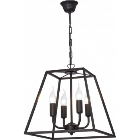 Основа люстры выполнена из металла черного цвета, плафон из металла черного цвета. Люстра со свечами будет хорошо смотреться в гостиной, кухне, над обеденным столом, кабинете, даче и удачно впишется в интерьер в стиле лофт. Модель имеет 1 плафон и 4 лампочки, оснащена цоколем E14 с максимальной мощностью лампочки 60 Вт и рассчитана на освещение площади до 12 кв. м.