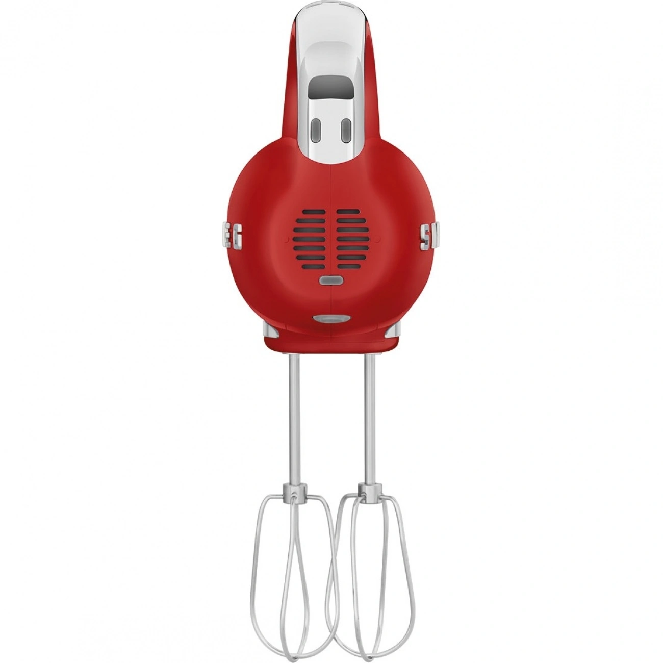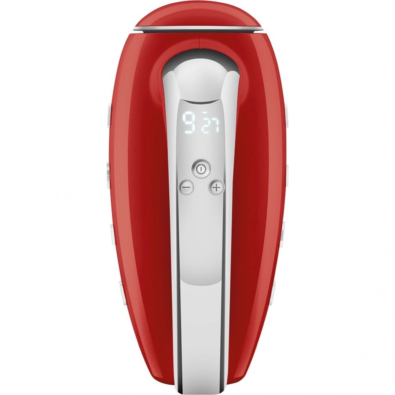Ручной миксер Smeg HMF01RDEU прекрасно дополнит крупную бытовую технику из линейки «Стиль 50-х годов». На LED-дисплее отображается таймер подсчета минут и секунд. При помощи удобного управления можно удобно регулировать скорости вращения, а также включить Турбо-режим. Венчик из нержавеющей стали для взбивания. Плоская алюминиевая насадка для взбивания. Алюминиевый крюк для замешивания теста.