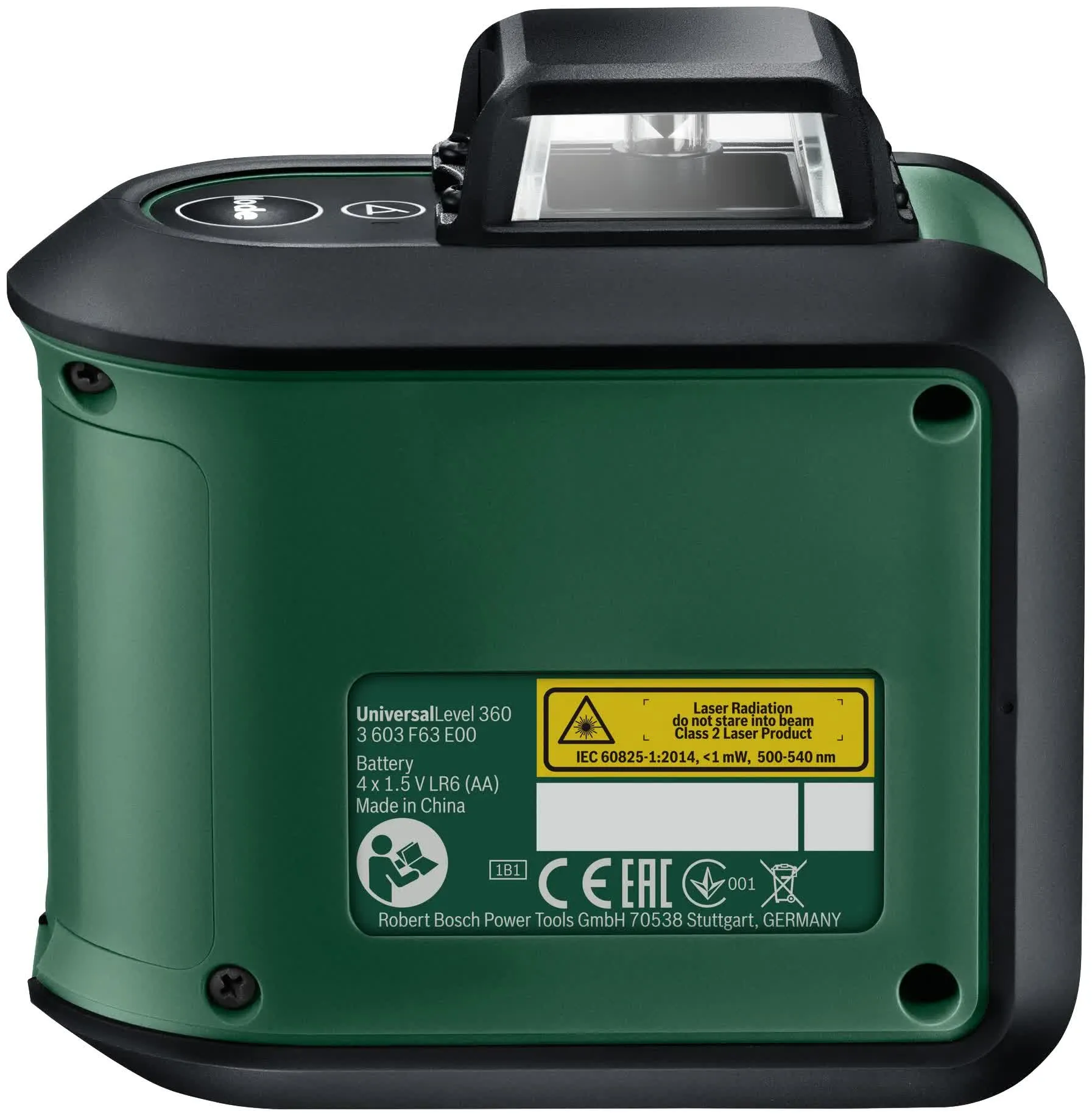 Возможность работы под наклоном. Легкий вес Bosch UniversalLevel 360 Basiс 0603663E00 для неутомительной работы. Технология зеленого лазера: улучшает видимость в 4 раза. Горизонтальный луч на 360° для точного выравнивания по всему помещению. Идеально выровненный вертикальный луч для еще большего спектра применения.