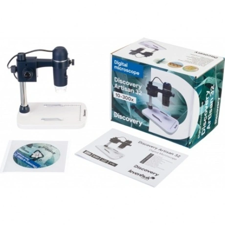 Цифровой микроскоп Discovery Artisan 32 с профессиональным штативом и программой для фотографирования, видеозаписи и измерений объектов станет отличным помощником человеку, который занимается ремонтом техники, оценкой качества металлов, заточкой ножей, реставрацией предметов искусства, ювелирным делом или другими прикладными работами. Также этот микроскоп прекрасно подойдет для хобби – например, создания цифровых архивов коллекций минералов и проч. В микроскопе используется 5-мегапиксельная цифровая камера, которая формирует картинку в разрешении до 2592x1944 пикс. Для получения изображения необходимо подключить прибор к внешнему экрану через кабель USB. Микроскоп совместим с компьютерами на базе Windows и Mac OS. При необходимости во время наблюдений можно включать встроенную подсветку – вокруг камеры расположены 8 ярких светодиодов. Подсветка, как и микроскоп в целом, питается через кабель USB, ее яркость можно регулировать. Увеличение микроскопа можно выбирать в диапазоне от 10 до 300 крат, а фокус корректируется в пределах от 0 до 150 мм. Корпус микроскопа покрыт нескользящей и приятной на ощупь резиной, сам прибор установлен на профессиональный штатив, основание которого является предметным столиком. Оно дополнено двумя измерительными шкалами и зажимами для образцов. Удобно, что микроскоп можно использовать и без штатива. Основные особенности: - Цифровой микроскоп с функцией фотографирования, видеозаписи и измерения объектов, - Камера 5 Мпикс, позволяющая получать изображение в разрешении до 2592x1944 пикс, - Увеличение от 10 до 300 крат, фокусировка в пределах от 0 до 150 мм, - Верхняя подсветка из 8 белых светодиодов регулируемой яркости, - Профессиональный штатив, основание с измерительными шкалами и зажимами для образцов, - Совместимость с Windows и Mac OS, питание через USB-подключение, - Возможность использовать микроскоп без штатива. Комплектация: микроскоп Discovery Artisan 32 с USB-кабелем, профессиональный штатив, основание с измерительной шкалой, шкала калибровки, компакт-диск с программным обеспечением, инструкция по эксплуатации и гарантийный талон.