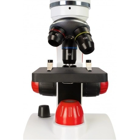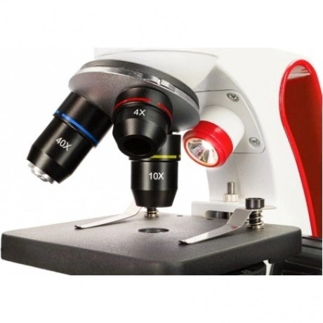 С монокулярным микроскопом Discovery Pico учеба в школе или колледже станет намного интереснее и результативнее. Он поможет погрузиться в увлекательный микромир и покажет простейших и структуру многих объектов окружающего мира. Также с помощью этого микроскопа можно проводить простые научные опыты и изучать жизнь в капле воды. В комплектацию включена познавательная книга о микромире, которая будет полезна начинающим биологам. Насадка микроскопа отклонена под небольшим углом в 30°, что повышает комфорт длительных наблюдений. Также насадку можно поворачивать вокруг оси на 360° – такая функция упрощает работу в группе, когда один и тот же образец должны посмотреть несколько человек. Все оптические элементы сделаны из стекла. Объективы 4х, 10х и 40х ахроматические, а окуляр 10х – широкопольный. Дополнительно объектив 40х имеет пружинящую оправу – защиту передней линзы от случайных повреждений. Общее увеличение микроскопа находится в диапазоне от 40 до 400 крат. Источник освещения – два светодиода, расположенные сверху и снизу от предметного столика. Благодаря этому наблюдения можно проводить как в проходящем, так и в отраженном свете. Яркость подсветки регулируется. Для работы подсветки требуются или подключение к сети переменного тока, или установленные батарейки. Сетевой адаптер включен в комплектацию. Еще одна особенность микроскопа – наличие точной фокусировки. Она позволяет быстрее и более плавно настраивать резкость картинки. Отметим наличие зажимов у предметного столика и диска с диафрагмами для регулировки светового потока от нижнего осветителя. Книга «Невидимый мир», включенная в комплектацию, упростит старт работы с прибором. Она рассказывает об устройстве микроскопа, о том, что можно наблюдать с его помощью, и о том, какие научные опыты можно провести прямо дома. Книга ярко иллюстрирована и написана «живым» языком без сложных для понимания терминов.