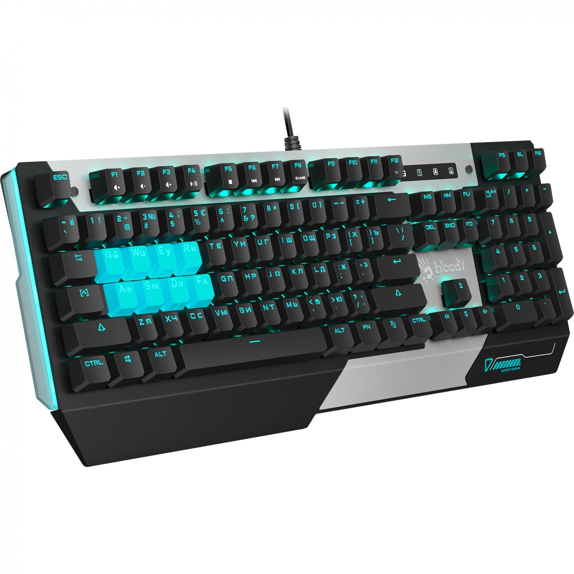 Игровая подсветка клавиш добавляет яркости и атмосферности в игровой процесс, обеспечивая видимость клавиш в темноте и возможность настройки под личные предпочтения. Подключение к ПК осуществляется через проводной интерфейс USB Type-A, что гарантирует стабильное и бесперебойное соединение.
