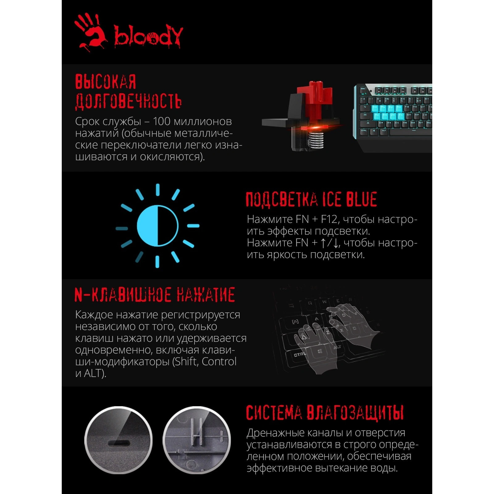 Клавиатура A4TECH – идеальный выбор для геймеров, стремящихся получить максимальное удовольствие от игрового процесса. Эта полноразмерная механическая клавиатура с 104 клавишами разработана для обеспечения надежности и скорости. Она оснащена высококачественными линейными переключателями, которые гарантируют мгновенное срабатывание и плавный ход, что делает её идеальной для интенсивных игровых сессий и быстрого ввода текста.