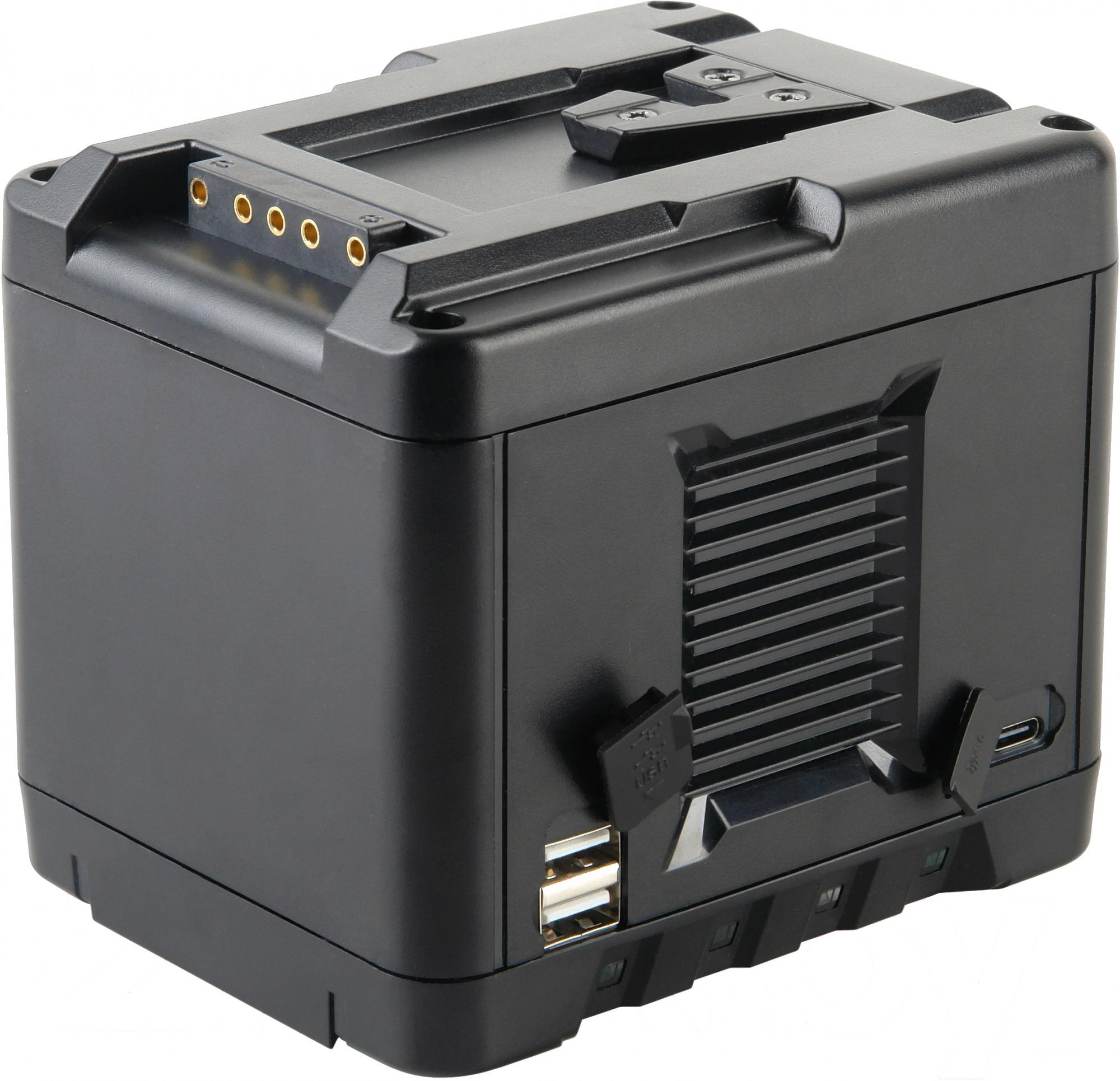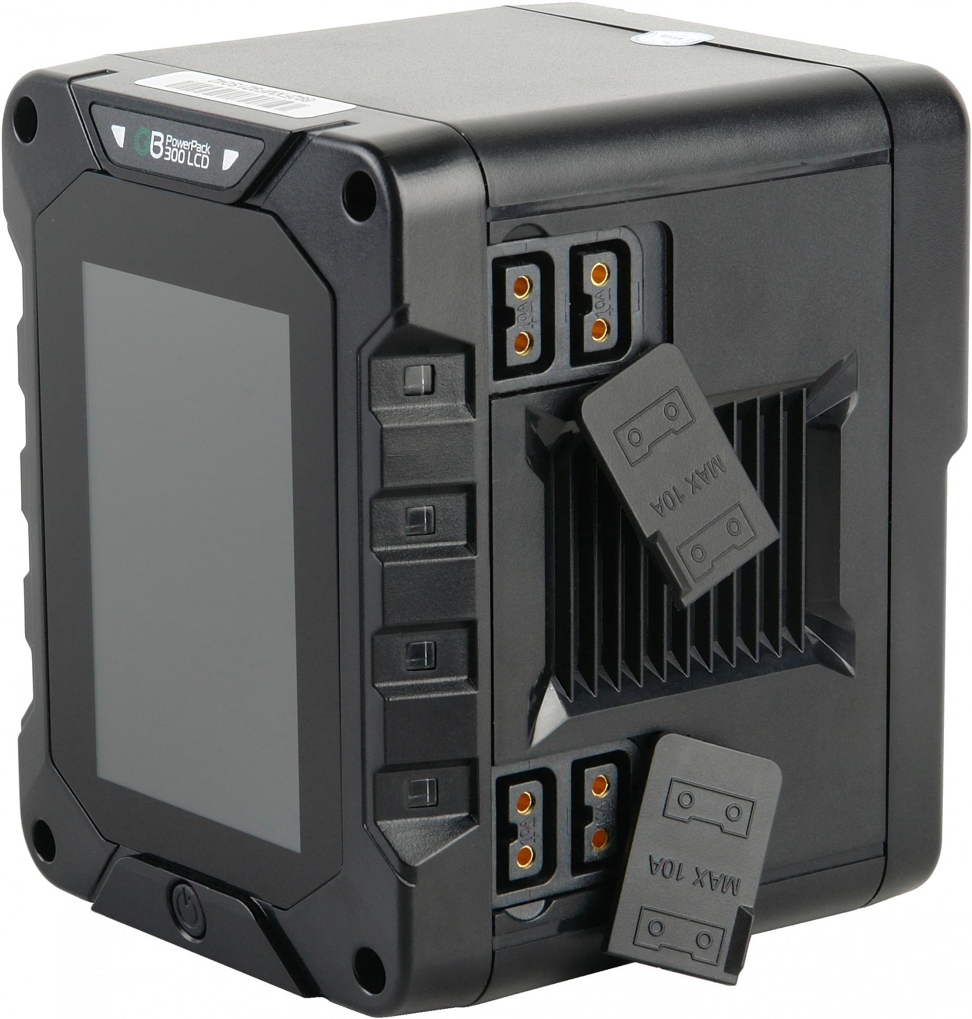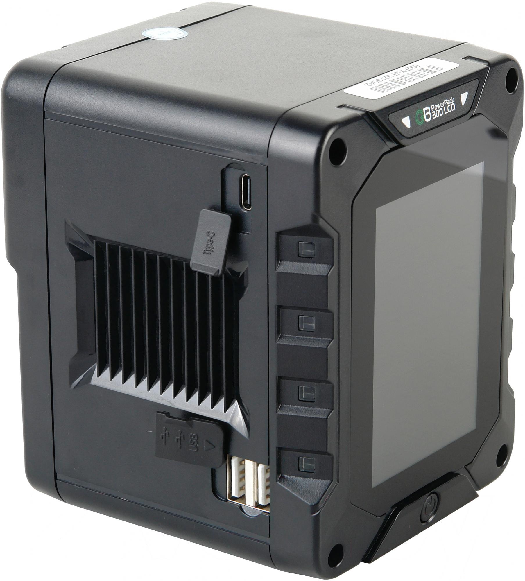 Аккумуляторный литий-ионный блок PowerPack 300 LCD с ЖК-дисплеем и адаптером типа V-mount разработан специально для питания применяемых в кинопроизводстве осветительных приборов, камер, мониторов и т.д. Для этого на корпусе дополнительно четыре разъема D-tap 10A, два 5В 2А USB, один USB Type C. Усиленный корпус предохраняет элементы питания от механических повреждений. PowerPack LCD оснащен контроллером питания с защитой от перезаряда, глубокого разряда, перегрузки по току и короткого замыкания. Дисплей размером 75х50 мм указывает время до полной зарядки или оставшееся время работы при текущем потреблении энергии, показывает температуру аккумулятора, напряжение и ток, индекс циклов перезаряда, обеспечивает визуальную индикацию остаточного заряда и режима работы. В батарее использованы высококачественные литиевые элементы с количеством циклов перезаряда 500-800. Аккумулятор можно использовать при температуре окружающей среды от -20 до +45°C.