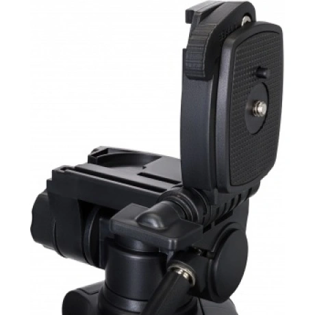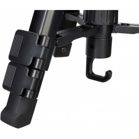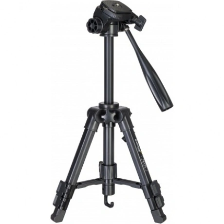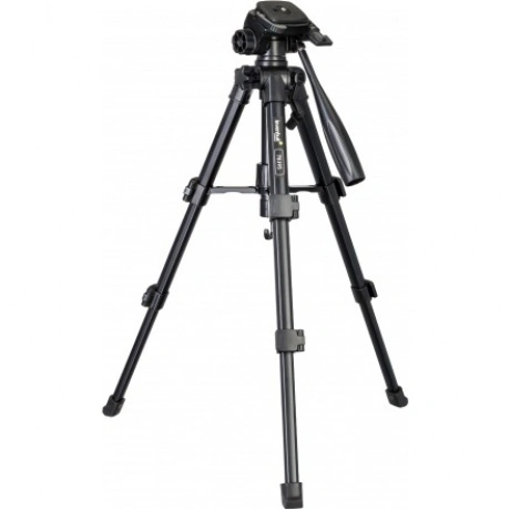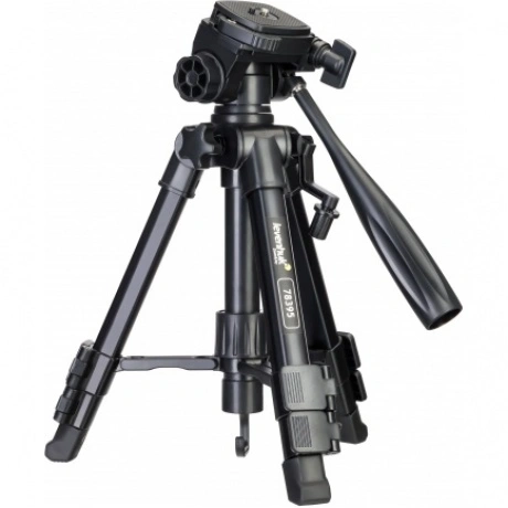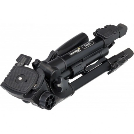 Levenhuk Level BASE TR30 – легкий и компактный в сложенном состоянии штатив, который удобно брать с собой в поездки. Он устойчивый, сделан из металла и выдерживает нагрузку до 8 кг, поэтому подходит для установки крупногабаритного и тяжелого оборудования. На штативе можно крепить фото- и видеотехнику, оптические приборы и любые другие приборы с резьбовым креплением 1/4 дюйма. В комплектацию включен чехол для переноски и хранения штатива. Перемещение штативной головки осуществляет по двум осям: в горизонтальной плоскости на 360°, а также вверх и вниз. К тому же можно откидывать вбок установочную площадку – на угол до 90°. На всех осях есть фиксаторы в виде винтов-барашков. Благодаря этому у пользователя появляется много свободы – установленный на штатив прибор можно зафиксировать во множестве разных положений. Для выбора подходящей высоты тоже доступно несколько вариантов. Во-первых, можно выдвинуть или задвинуть ножки. Так как они оборудованы быстрозажимными флип-замками, эта регулировка осуществляется быстро и без усилий. Также можно поднять центральную штангу – для этого используется отдельная ручка. Обратите внимание: максимальная высота штатива составляет 700 мм. На крюк центральной штанги можно вешать утяжелитель, который придаст большую устойчивость всей конструкции. А пузырьковый уровень штатива упростит выравнивание по линии горизонта.