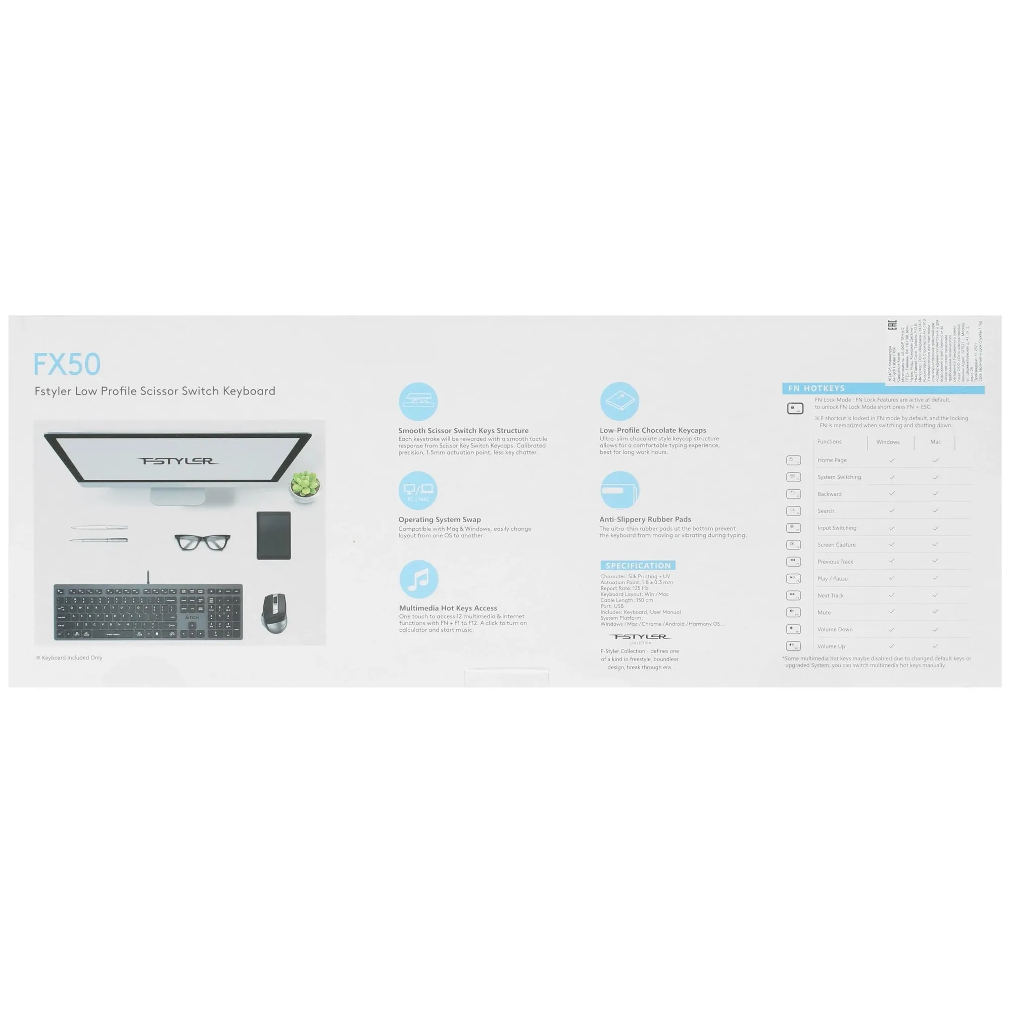 Клавиатура A4Tech Fstyler FX50 серый - характеристики, описание товара, фото и цены представлены на карточке товара. Этот товар вы можете купить по цене 2494 руб., позвонив по телефону 8(495)137-52-98 в Москве, или оформив покупку через корзину.