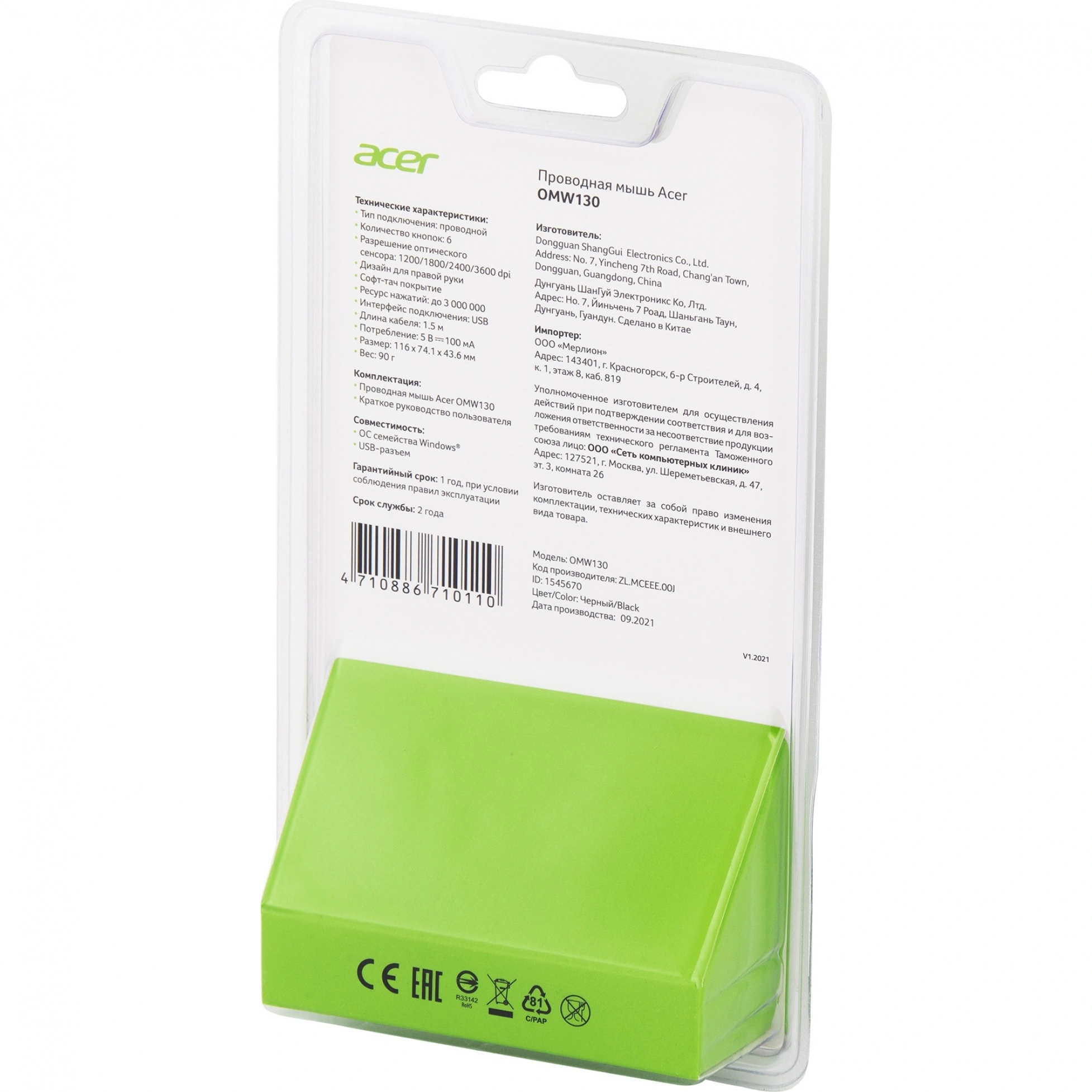Бренд Acer, известный своим качеством и надежностью, снова не разочаровал, предложив идеально сбалансированное решение для всех пользователей ПК. Эта мышь станет вашим надежным помощником в любых задачах.