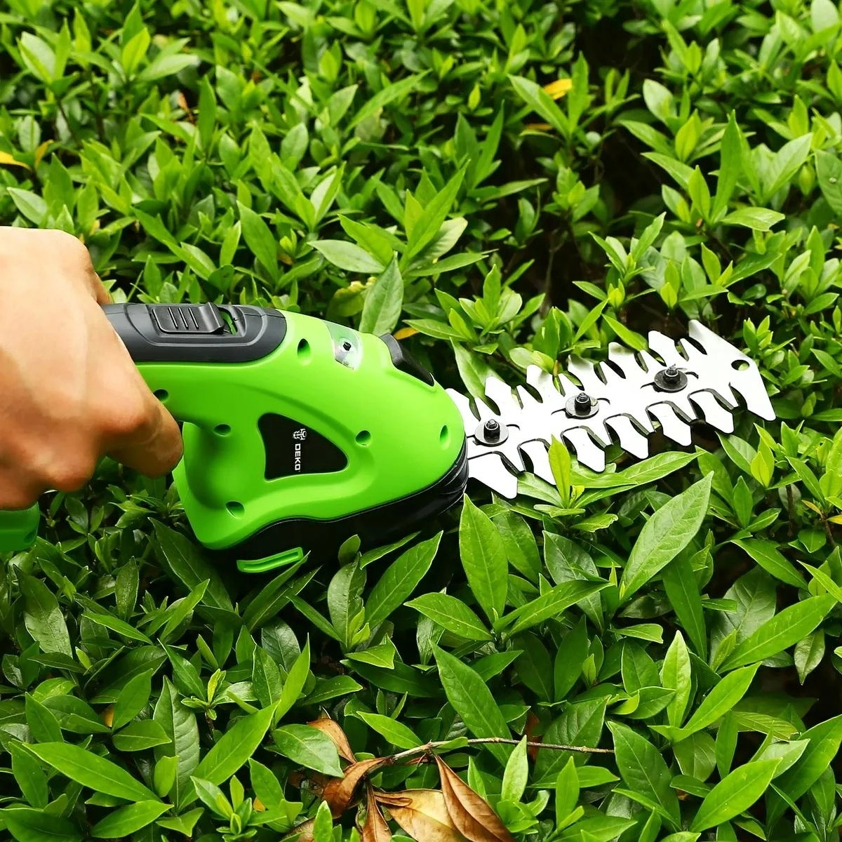 Садовые аккумуляторные ножницы DEKO DKGS3.6 063-4244 подходят для стрижки кустарников и газона.