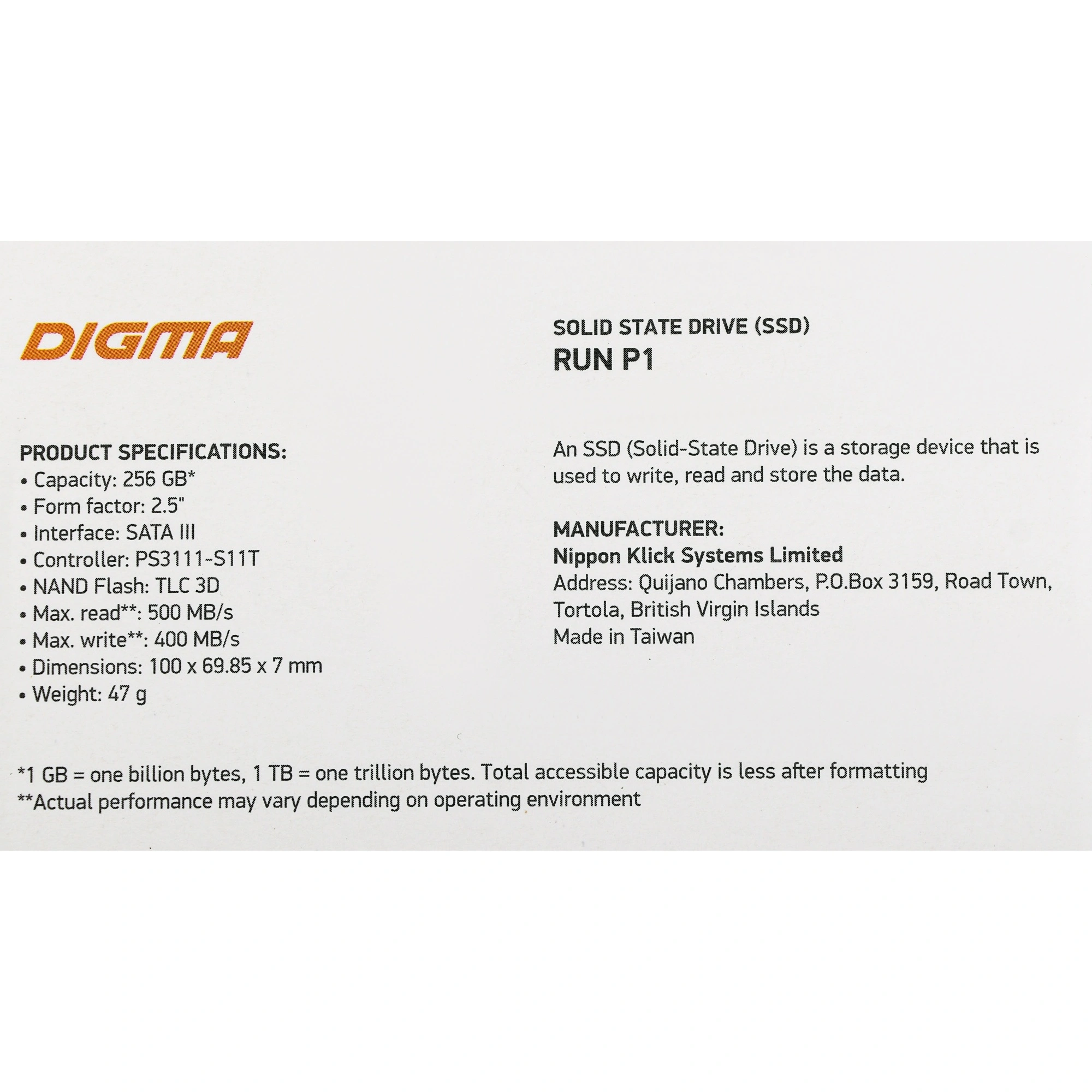 Digma Run P1 это высокопроизводительные и высоконадежные запоминающие устройства, которые состоят из энергонезависимой флэш-памяти NAND и полупроводниковых компонентов. Эта технология предназначена для оптимизации ограничений низкой вычислительной производительности традиционных жестких дисков. Все механические детали были заменены электронными компонентами, для предотвращения ударов и вибрации. SSD диски серии Run P1 имеют традиционный интерфейс SATA и размер корпуса 2,5?, что соответствует, размеру стандартного диска, для ноутбука и позволяет произвести оперативную замену жесткого HDD диска на твердотельный SSD диск.