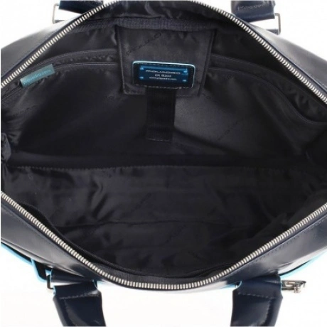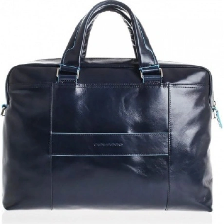 Сумка для ноутбука, с отделением и iPad Air/Air2 двумя ручками, карманами для зонтика и для бутылки от компании Piquadro, коллекция Blue Square. Натуральная телячья кожа синего цвета.