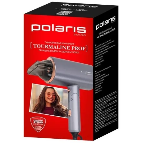 Фен POLARIS Tourmaline Prof ? это инновационная разработка для волос. Турмалиновый ионизатор генерирует отрицательно заряженные частицы, снимая статическое электричество с волос, облегчая их расчесывание и сохраняя внутреннюю влагу. Волосы приобретают красивый здоровый вид. Мощность: 2000Вт. Складная конструкция корпуса для удобного хранения. Режим холодного обдува для закрепления укладки. 3 температурно-скоростных режима. Концентратор. Удобная петля для подвешивания. Переключатель температуры и скорости. Съемная решетка.