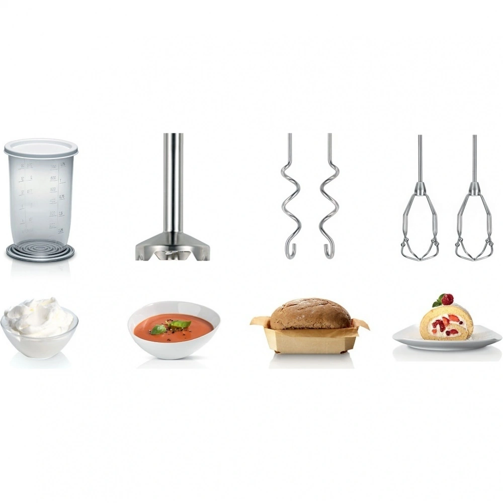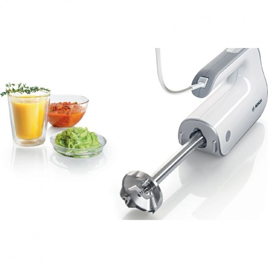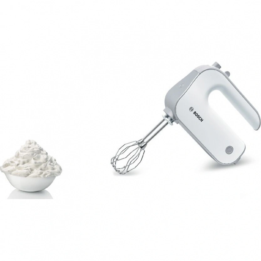 Миксер Bosch MFQ 4080 Styline 500 W Белый, серебряный - Легко справляется с любыми задачами. Благодаря мощному и при этом бесшумному мотору вы добьетесь превосходных результатов при выпечке или приготовлении пищи. От смесей для кексов до тяжелого теста - он достаточно мощный для приготовления ваших любимых рецептов. Больше объема за меньшее время. Крюки для замешивания крутого теста из нержавеющей стали. Комфортный и безопасный в использовании. Полный контроль над процессом смешивания.