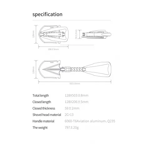 Многофункциональная лопата NexTool NE20033 выполнена из высококачественных материалов, которые отличаются прочностью и износостойкостью. Помимо основной функции лопату можно использовать как мотыгу или кирку, в качестве лома, пилы, гвоздодера и даже для открывания бутылок. Лопата с V-образным острием легко врезается в почву. Треугольная ручка позволяет удерживать инструмент в любом удобном положении, экономя силы. А пила с разнонаправленными зубьями быстро и ровно пилит при каждом движении. Система крепления лопаты NexTool совершенно не боится вибраций и резких толчков во время работы, обеспечивая прочную фиксацию в выбранном положении без люфтов и разбалтывания. Не нужно мучаться с инструкциями — достаточно взять и повернуть фиксатор, затем поставить лопату, мотыгу, кирку или крюк в нужное положение, а потом также быстро завернуть фиксатор обратно, быстро подготавливая инструмент к новой задаче. Лопата мультифункциональная Nextool Shovel NE20033 состоит из трех сегментов, в сложенном состоянии ее общая длина не превышает 21 см, благодаря чему ей легко найти уголок в багажнике, ящике для инструментов или рюкзаке.