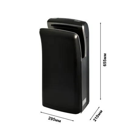 Сушилка для рук используется в туалетных комнатах торговых центров, гостиниц, аэропортов, предприятий общеcтвенного питания и других местах массового пребывания для бесконтактной гигиеничной сушки. Модель оснащена нагревательным элементом, электродвигателем с вентилятором и кабелем питания с вилкой. Корпус выполнен из ударопрочного АБС-пластика черного цвета. В комплект поставки входят набор монтажных креплений, монтажный ключ и инструкция по эксплуатации.