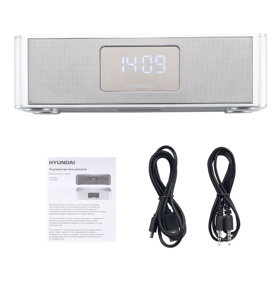 Радиобудильник Hyundai H-RCL360 – элегантная, многофункциональная модель белого цвета, которая, безусловно, украсит любой интерьер. Встроенная антенна хорошо принимает сигналы радиостанций в FM диапазоне. В течение дня будет обеспечена приятная музыка. Динамики обеспечат высокое качество звука. Функция будильника тоже достаточно востребована, главное - комфортно настроить громкость. Жидкокристаллический дисплей показывает время. Цифры хорошо читаемы благодаря яркой подсветке. Корпус выполнен из прочного пластика, за ним очень удобно ухаживать. Передняя часть закрыта сеточкой, что придает дополнительную элегантность. Прибор компактный, не занимает много места. Если есть желания прослушивать любимые мелодии, то можно воспользоваться картой памяти или съемным накопителем. Для подключения смартфона доступна функция Bluetooth, для проводного соединения предусмотрен кабель AUX, который входит в комплект.