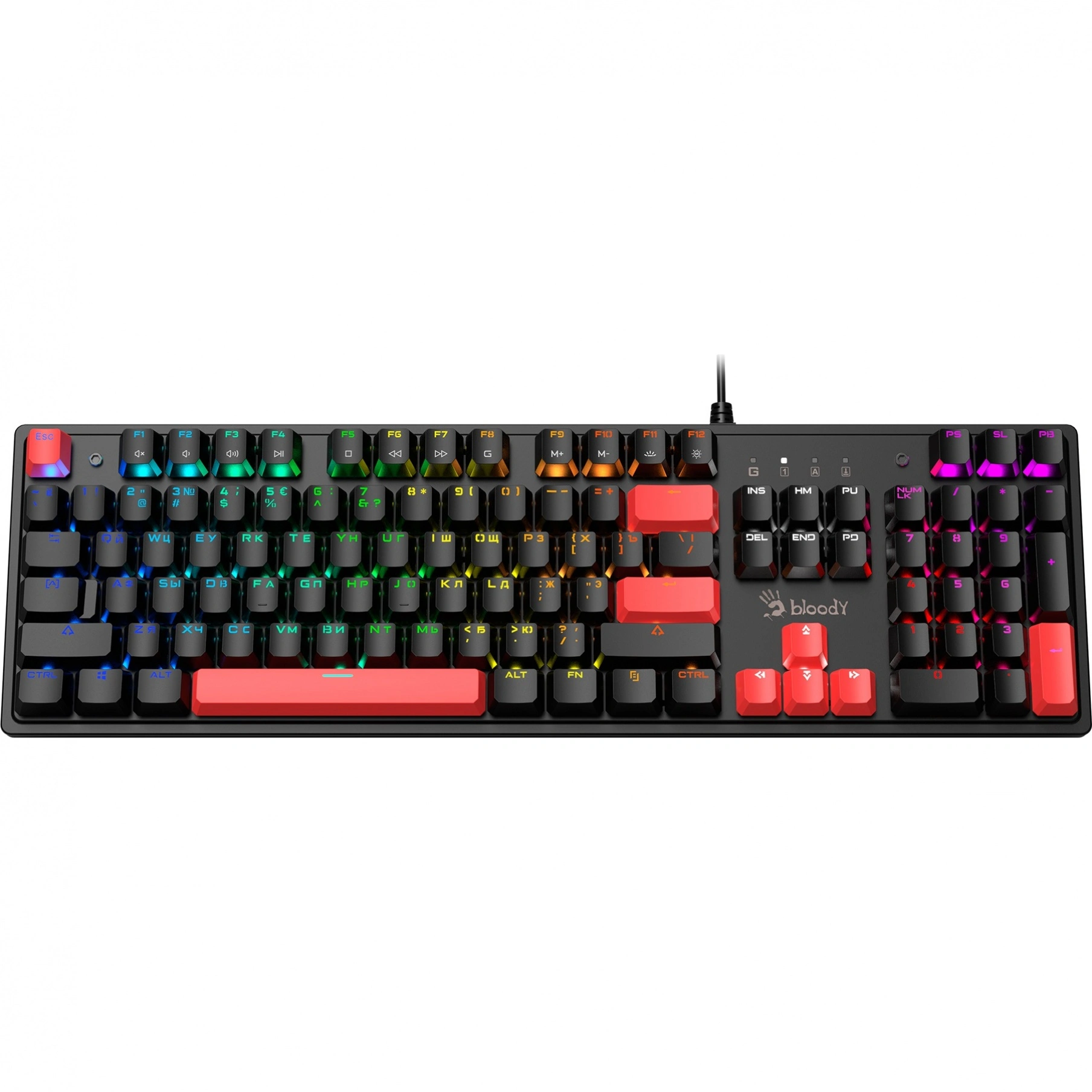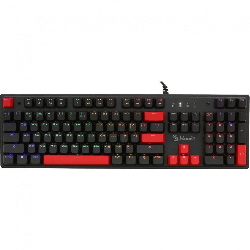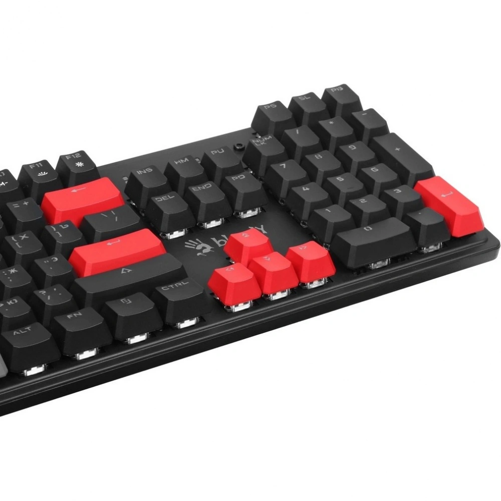 Клавиатура A4Tech — это идеальный выбор для геймеров и пользователей, которые ценят качество и надежность. Данная механическая клавиатура с проводным подключением обеспечивает мгновенный отклик и бесперебойную работу. Оснащенная 104 клавишами с ANSI-раскладкой, она позволяет с комфортом работать и играть в течение долгих часов.
