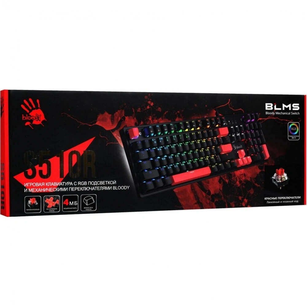Клавиатура A4Tech Bloody S510R механическая черный - фото, характеристики, описание и цена представлены на карточке товара. Для того чтобы купить этот товар по цене 3641 руб., вам надо или позвонить по телефону 8(495)137-52-98 в Москве, или оформить покупку в личном кабинете, добавив товар в корзину.