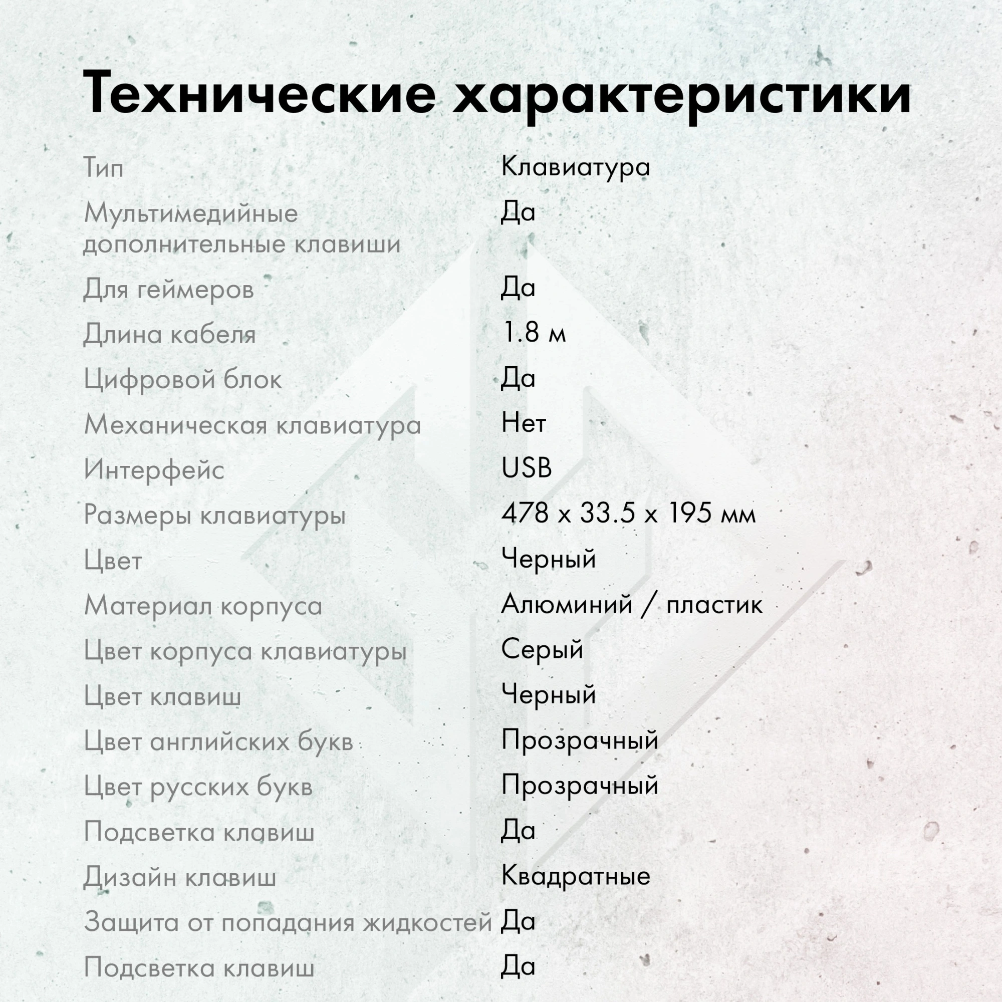 С кабелем длиной 1.8 метра и интерфейсом подключения USB Type-A вы можете быть уверены в стабильной и быстрой передаче данных. Благодаря весу 650 г клавиатура отличается устойчивостью, оставаясь на месте даже в самых напряженных игровых ситуациях.
