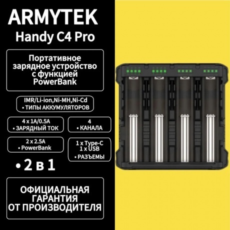 Зарядное устройство Armytek Handy C4 Pro 4 канальное - фото, характеристики, описание и цена представлены на карточке товара. Для того, чтобы сразу узнать о поступлении этого товара в наш интернет-магазин, вам надо подписаться на уведомление по email, оставив адрес своей электронной почты в форме выше на данной странице.