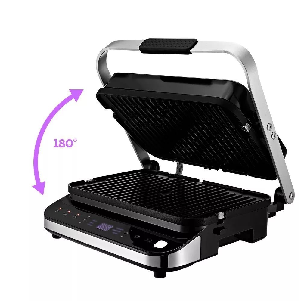 Электрогриль 2 в 1 предназначен для приготовления мяса, рыбы, овощей, сосисок, бутербродов и многих других блюд. Высокая температура способствует быстрому приготовлению продуктов, а ребристая поверхность панелей появлению полосатого рисунка. Электрогриль оснащён панелями для гриля с ребристой поверхностью, с помощью которых вы можете приготовить мясо, овощи, сосиски и многое другое. Также в комплекте идут две дополнительные панели для приготовления вкуснейших домашних вафель! С помощью панели управления вы можете выбрать автоматический режим работы: мясо, рыба, курица, сосиски, гамбургер и бекон. Вы также можете вручную установить температуру нагрева до 230C. Кроме того, прибор обладает функцией разморозки продуктов. С помощью КТ-1682 вы можете готовить как в двухстороннем, так и в одностороннем режиме. В одностороннем режиме крышка гриля откидывается на 180, и гриль превращается в большую жаровню. Для приготовления можно использовать обе поверхности. Нагревательные панели изготовлены из алюминия с нанесённым антипригарным покрытием. Это позволяет использовать минимум масла в процессе готовки. Кроме того, панели съёмные и могут быть легко очищены. Весь лишний жир и сок из блюд попадёт в съёмный поддон. Просто выньте поддон и помойте его с моющим средством!