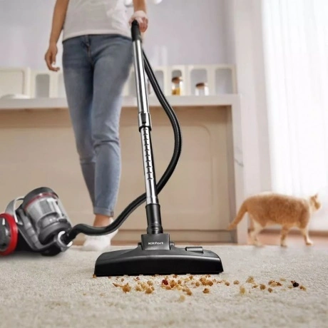 Пылесос Kitfort КТ-5152 имеет многоуровневую систему фильтрации, что помогает провести качественную уборку. Также устройство оснащено. выходным фильтром, который уменьшает выброс пыли обратно в воздух. Благодаря комплекту насадок пылесос удобно использовать как при генеральной уборке, так и при локальной. С ним утомительная уборка превращается в легкое и увлекательное занятие, а время уборки сокращается вдвое. Съемный пылесборник выполнен из прозрачного пластика, поэтому вы поймете, когда его следует очистить. Пылесборник легко снимается, а пыль из него. вытряхивается очень просто. Пылесборник с блоком фильтров и выходной фильтр легко моются, что значительно облегчает уход за устройством. У пылесоса простое управление. Кнопку включения на корпусе устройства можно нажать не наклоняясь, слегка нажав на нее ногой. Выбор мощности всасывания для разных типов поверхности и степени загрязнений осуществляется регулятором на корпусе пылесоса. Максимальная мощность всасывания подойдет для очистки ковров и сильных загрязнений, а минимальная для уборки гладких поверхностей с легкой степенью загрязнения. Пылесос имеет большие колеса для легкого перемещения и телескопическую удлинительную трубку, с помощью которой вы можете выбрать длину трубки под ваш рост. Для удобного хранения насадок в комплекте есть держатель, который крепится на удлинительную трубку. В пылесосе предусмотрена автоматическая смотка шнура в корпус устройства, поэтому шнур питания не будет мешать при хранении. Пылесос можно использовать для уборки полов и ковровых покрытий, а также чистки мягкой мебели.