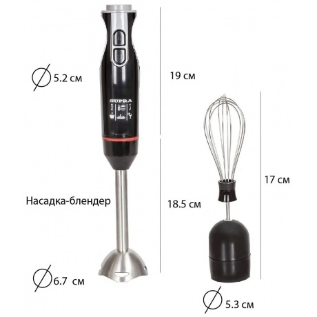Описание товара Блендер погружной Supra HBS-797 800Вт черный/красный