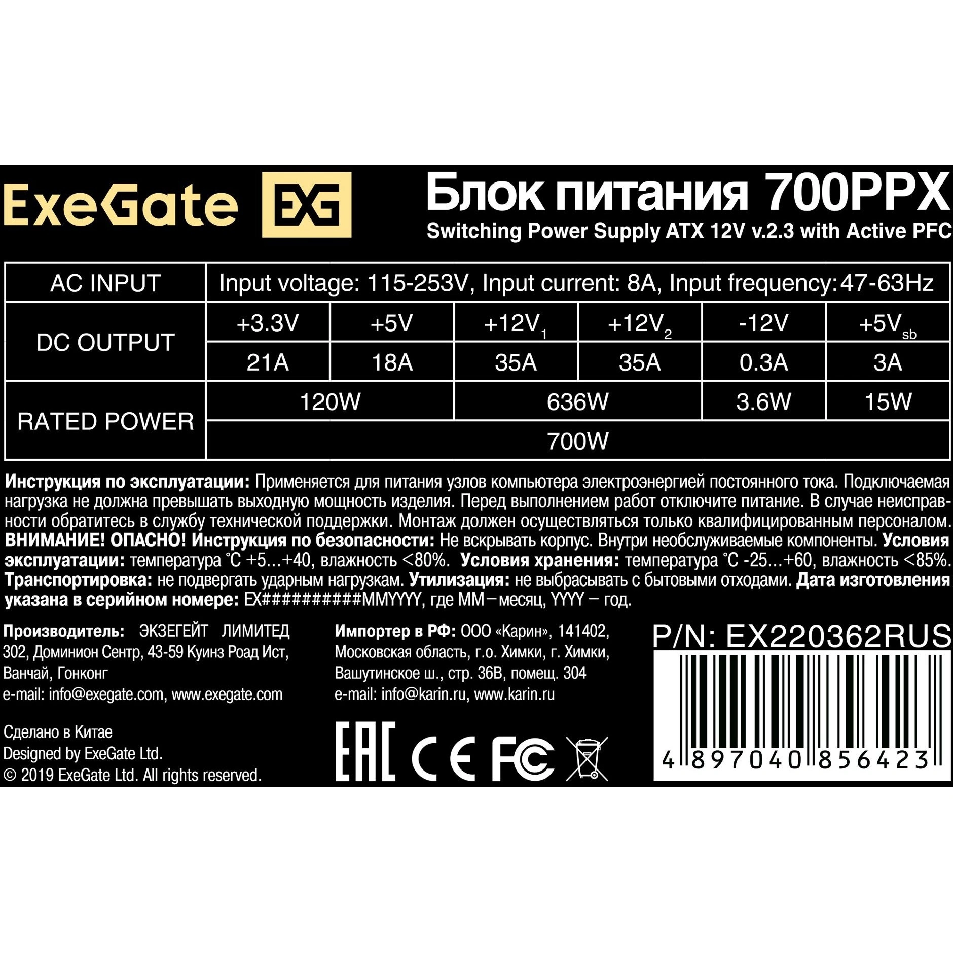 Отзывы о товаре Блок питания ExeGate 700PPX black (EX220362RUS-S)