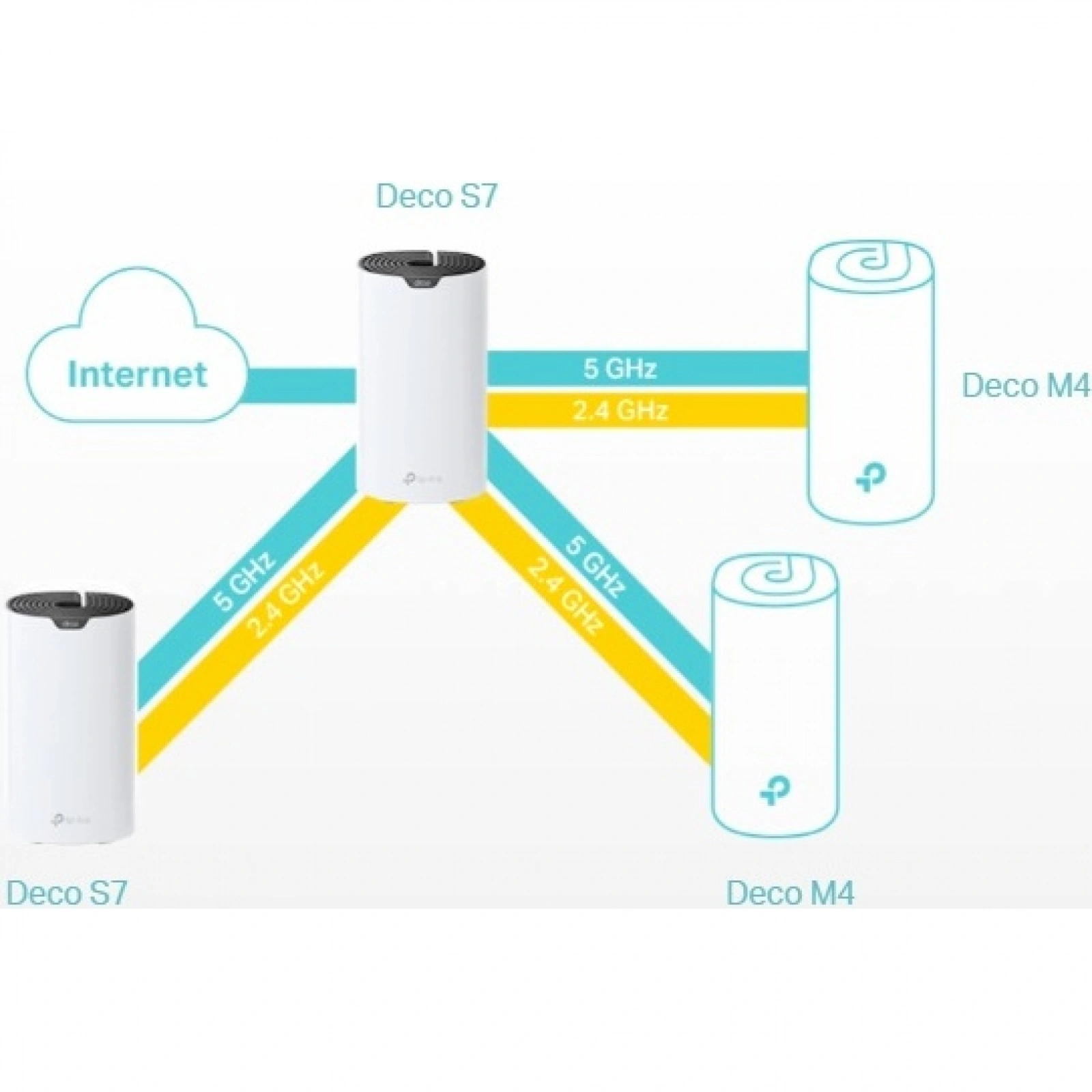 TP-Link Deco S7(3-pack), AC1900 Домашняя Mesh Wi-Fi система, до 600 Мбит/с на 2,4 ГГц + до 1300 Мбит/с на 5 ГГц, 3 встр.антенны, 3 гиг. порта (WAN/LAN)