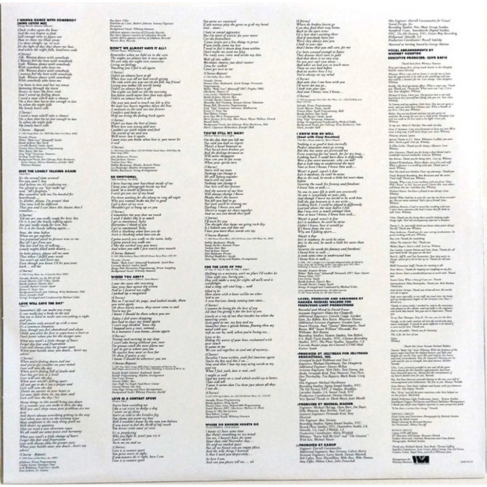 Лицензионное издание, выпущенное на виниле. В альбом вошли следующие композиции: I Wanna Dance with Somebody (Who Loves Me), Just the Lonely Talking Again, Love Will Save the Day, Didn't We Almost Have It All, So Emotional, Where You Are, Love Is a Contact Sport, You're Still My Man, For the Love of You, Broken Hearts Go, I Know Him So Well