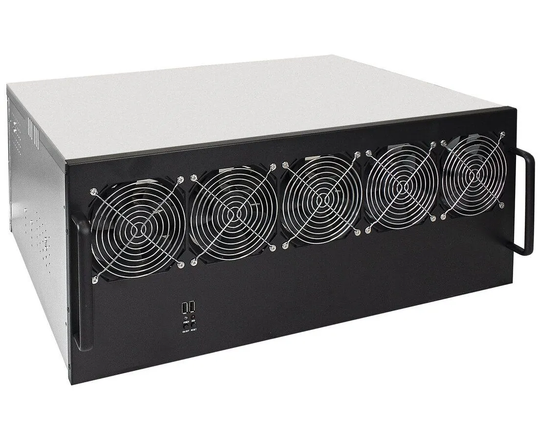 Корпус системного блока EXEGATE EX270772RUS для майнинга Pro 13-430 <без БП, 2USB, 5fan 120мм, места под: 13 видеокарт, 2 БП