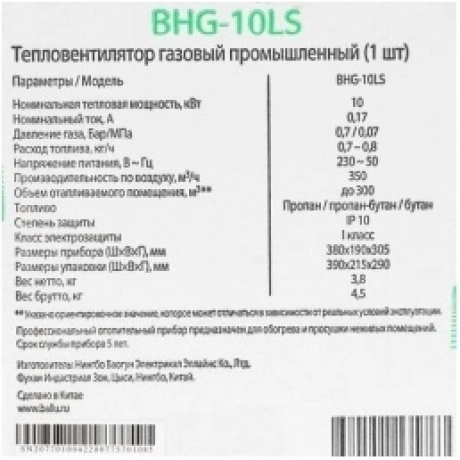 Отзывы о товаре Пушка тепловая газовая Ballu BHG-10LS