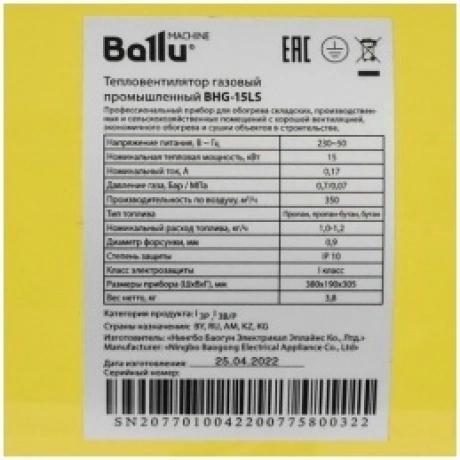 Отзывы о товаре Пушка тепловая газовая Ballu BHG-15LS