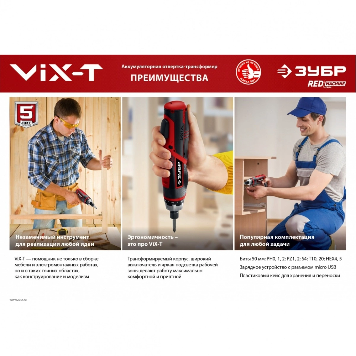 Отзывы о товаре Отвертка аккумуляторная трансформер ЗУБР ViX-T 3.6 В, кейс, 10 бит (ЗО-ЕМ-3.6 Ли)