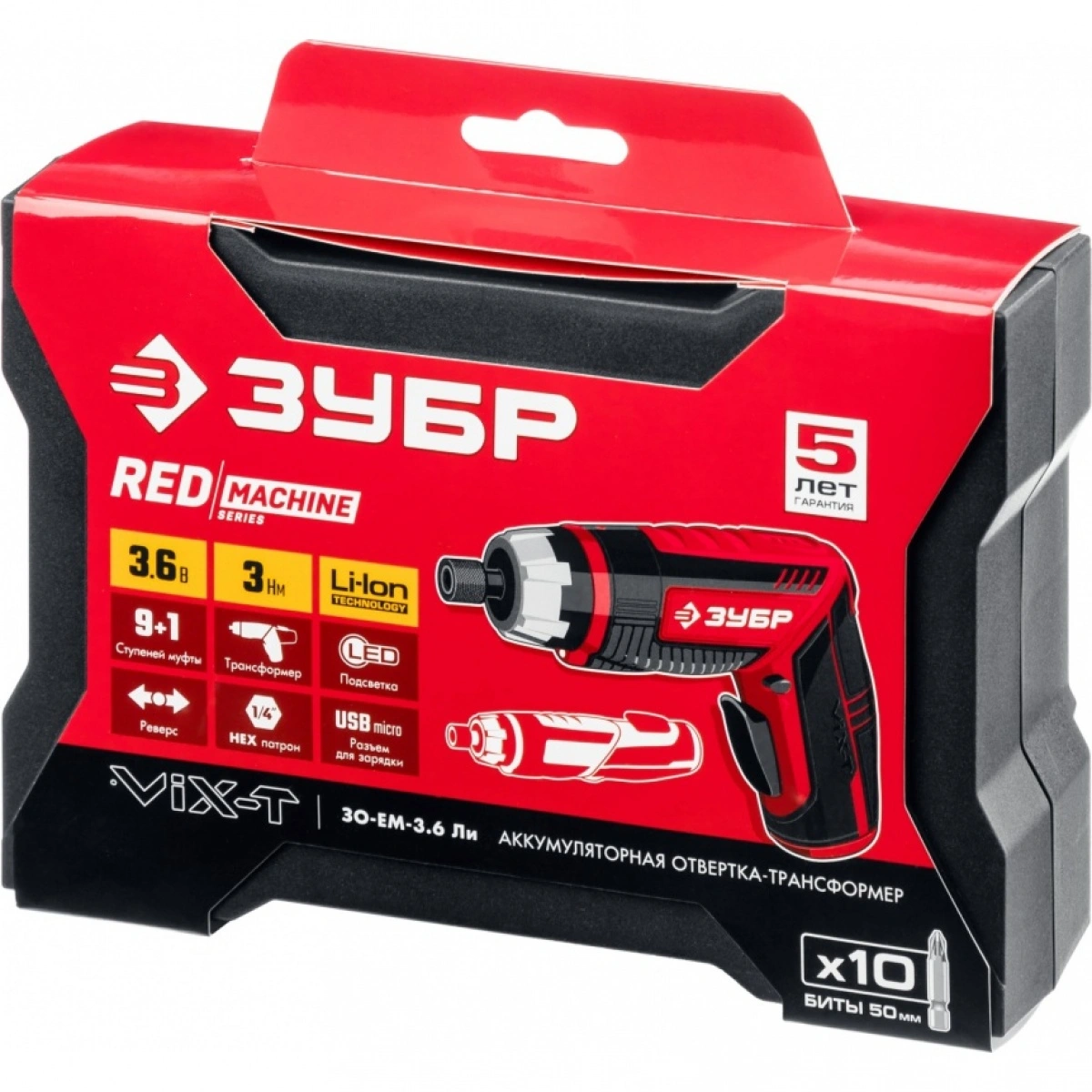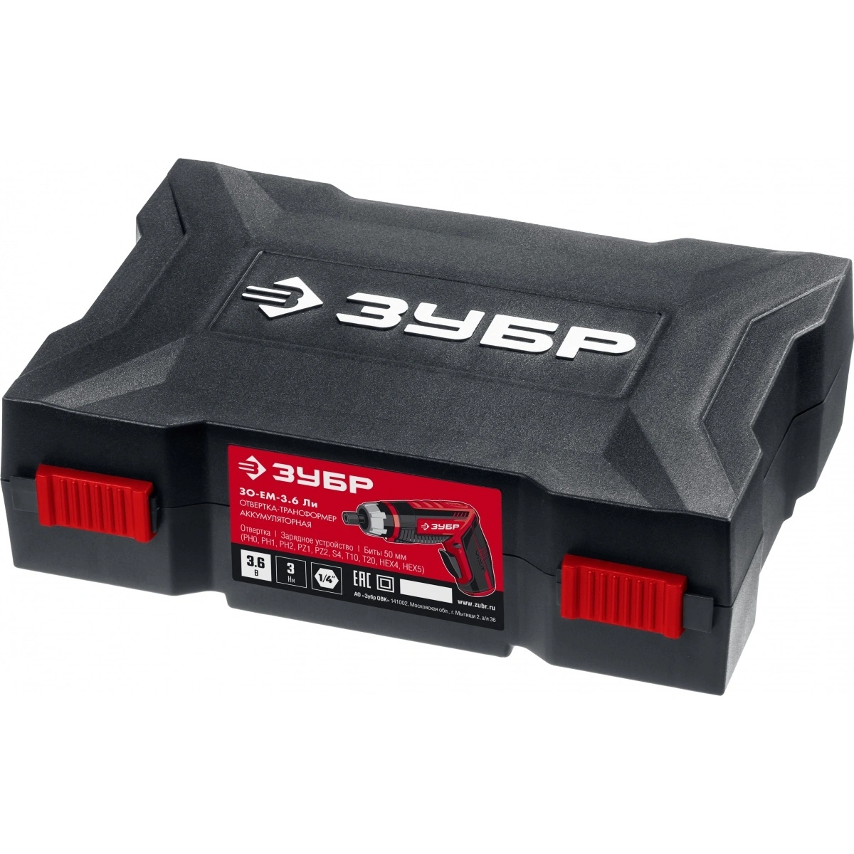 Отвертка аккумуляторная трансформер ЗУБР ViX-T 3.6 В, кейс, 10 бит (ЗО-ЕМ-3.6 Ли) в Москве