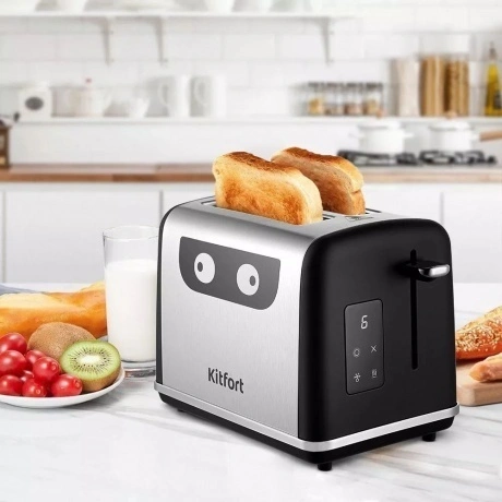 Тостер Kitfort КТ-6221 создан для любителей ароматного и хрустящего, поджаренного хлеба. Прибор позволяет быстро поджарить тосты для горячих бутербродов, сэндвичей, а также бейглы, круассаны, гренки и хлебцы для закусок. Тостер оснащён сенсорной панелью управления и дисплеем. «Подогрев» служит для разогрева уже готовых тостов, если они остыли. «Разморозка» позволяет приготовить тосты из замороженного хлеба. «Стоп» - прибор выключается, а тосты поднимаются наверх. Загруженные тосты автоматически центрируются, чтобы их поджарка с двух сторон была равномерной независимо от толщины куска. После приготовления, устройство отключается, а тосты поднимаются вверх, чтобы их было удобнее извлекать, без риска обжечься. Благодаря 6 степеням обжаривания вы можете приготовить горячие тосты на любой вкус и из любых видов хлеба. Особый вкус и цвет тостов получаются такими благодаря карамелизации сахара, содержащегося в муке, в процессе приготовления. В нижней части корпуса тостера расположен съёмный поддон для сбора крошек. Просто выдвиньте его и выбросите скопившиеся крошки, а остатки протрите салфеткой. Тостер Kitfort КТ-6221 порадует вас не только свежеприготовленными хрустящими тостами, но и своим оригинальным дизайном! В любой момент вы можете отклеить стикер без вреда для поверхности. Вы можете приготовить сразу 1 или 2 тоста одновременно. На дне корпуса тостера имеется отсек для хранения шнура, в который можно смотать излишки шнура электропитания, чтобы он не мешал на столе.