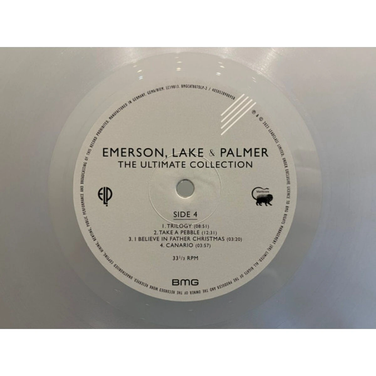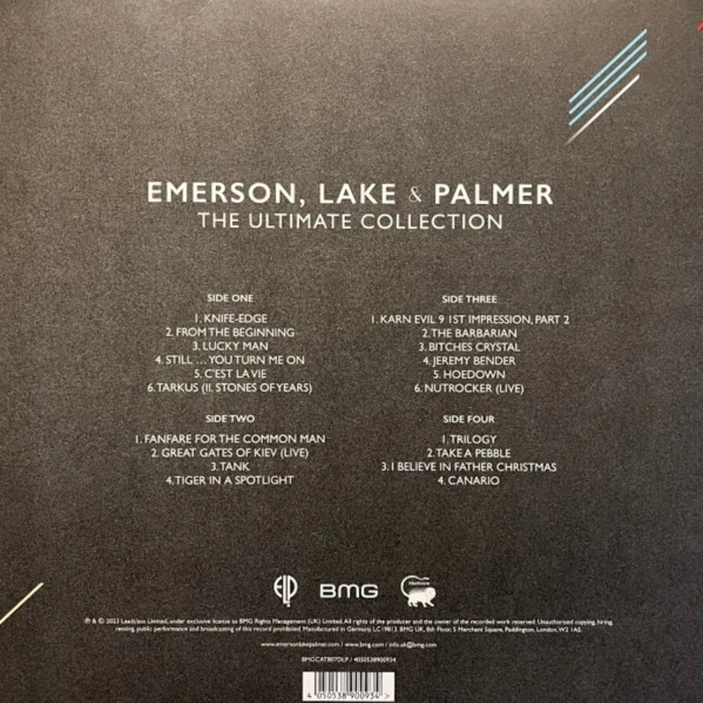 Лицензионное издание, выпущенное на виниле. Содержание альбома: Knife-Edge, From The Beginning, Lucky Man, Still. You Turn Me On, Cest La Vie, Tarkus (II. Stones Of Years), Fanfare For The Common Man, Great Gates Of Kiev (Live), Tank, Tiger In A Spotlight, Karn Evil 9 1st Impression, Part 2, The Barbarian, Bitches Crystal, Jeremy Bender, Hoedown, Nutrocker (Live), Trilogy, Take A Pebble, I Believe In Father Christmas, Canario
