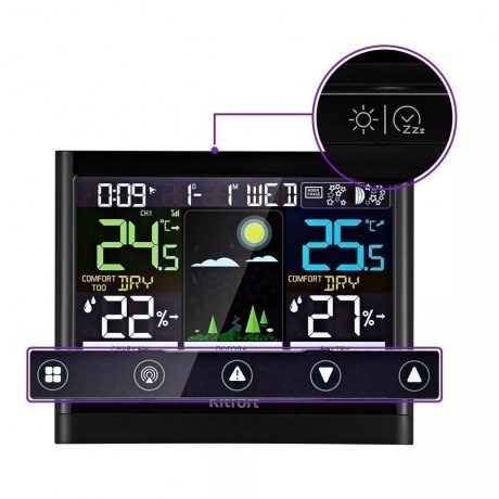 Метеостанция KT-3318 — это прибор, который позволит следить за показаниями температуры и влажности в помещении и на улице, фазой луны, погодой. Устройство прогнозирует погодные условия на ближайшие 12–24 часа на основе изменения температуры и влажности.