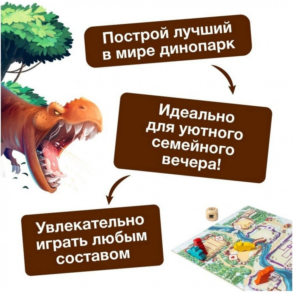 Вы стали управляющим зоопарка, полного реальных динозавров! Каким образом вы все организуетеx Соберете всех динозавров вместе или посадите в разные вольерыx Посмотрите, каких динозавров вы получили, какие проблемы предстоит решить, и постарайтесь заинтересовать как можно больше гостей вашего динопарка. Бросьте кубик, чтобы определить место для нового динозавра, выберете одного из имеющихся у вас и отправьте его в динопарк. Передайте оставшихся динозавров игроку слева от вас и продолжайте игру!