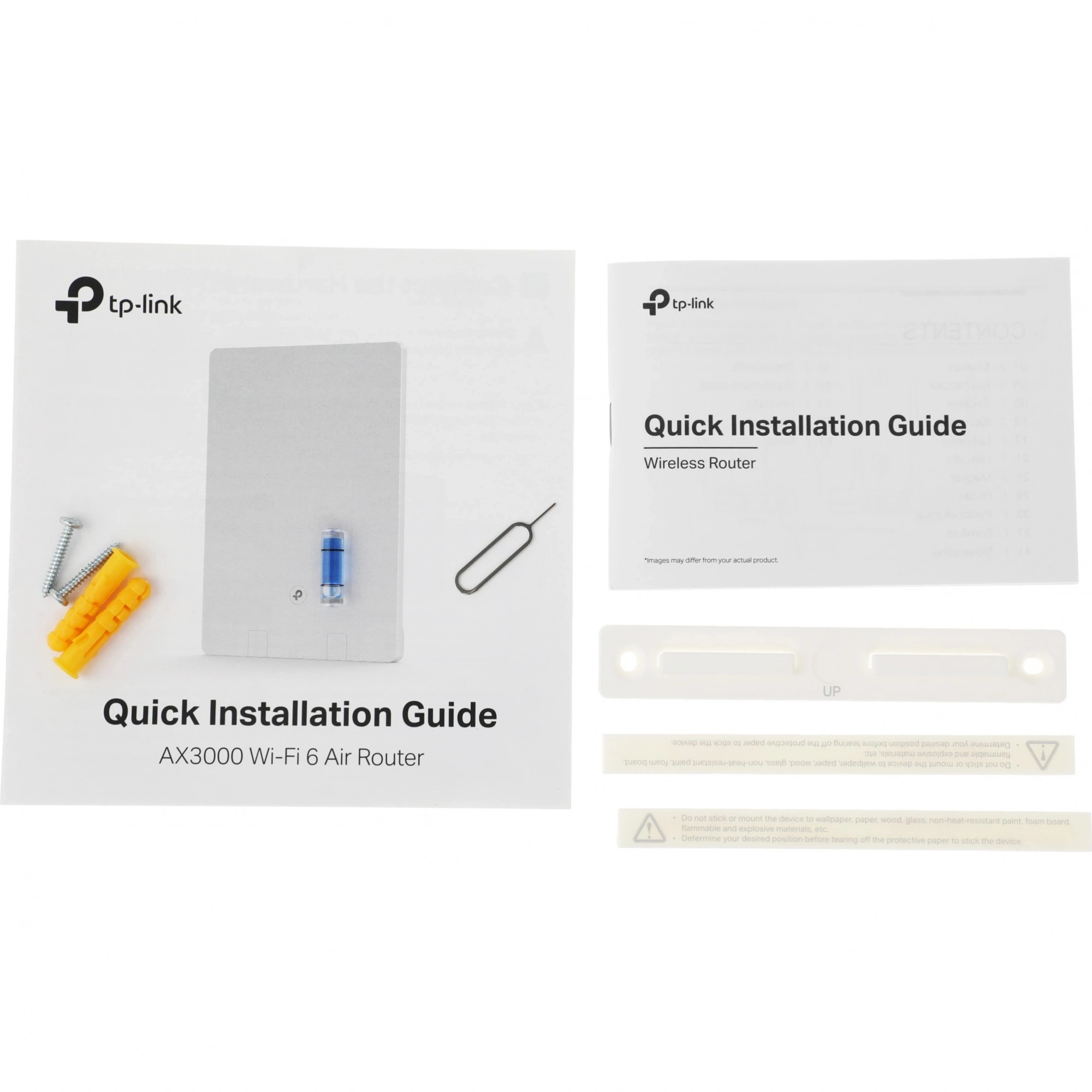 Роутер, краткое руководство по установке, адаптер питания, пластиковое крепление, гигабитный сетевой кабель, принадлежности для монтажа.