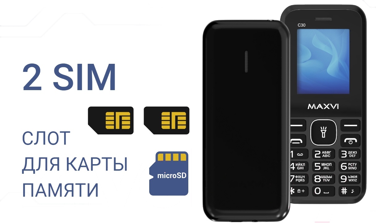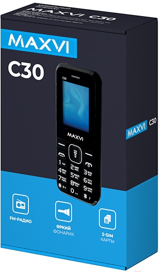 Maxvi C30 – простой в использовании и надёжный аппарат с двумя sim-картами, аудиоплеером, FM-радио и удобной клавиатурой. Аккумулятор ёмкостью 600 мАч обеспечит надежную связь до 100 часов в режиме ожидания и до 5 часов в режиме непрерывных разговоров.