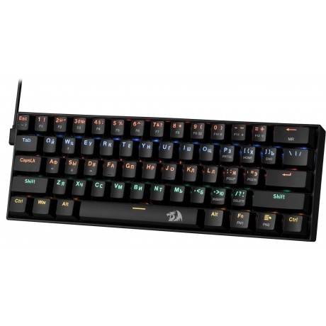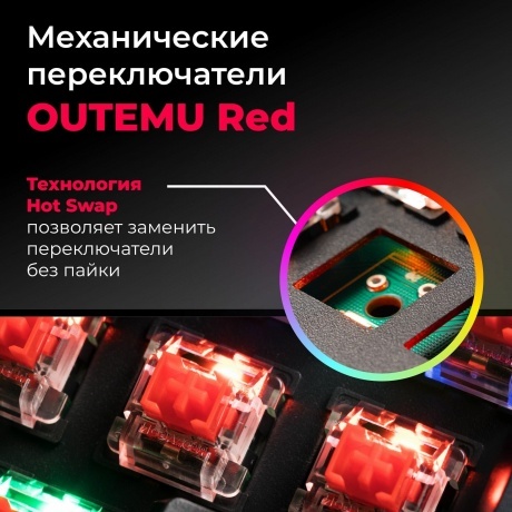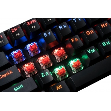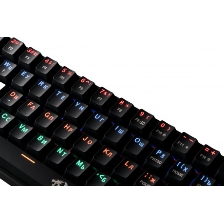 Укороченный и стильный корпус с прекрасным функционалом для профессионалов, экономящих место на рабочем или игровом столе. Тихие механические переключатели OUTEMU RED, ударопрочная влагоустойчивая конструкция с регулируемой радужной подсветкой, аппаратная блокировка клавиши WIN во время игры.