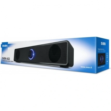 Компания SVEN продолжает развивать линейку компактных акустических систем, занимающих минимум пространства рабочего места и подходящих для использования как со стационарным ПК, так и с ноутбуком. SVEN 422 имеет размеры всего лишь 315 ? 60 ? 55 мм, за звук в ней отвечает пара динамиков диаметром 52 мм, обеспечивающих звучание в диапазоне от 80 до 20 000 Гц. При желании такую колонку даже можно взять с собой, ведь ее вес тоже крайне невелик — всего лишь чуть больше 350 г, а корпус сделан из прочного пластика. Дизайн акустики 2.0 выполнен в современной минималистичной манере, но при этом не лишен оригинальности. Внимание сразу привлекает регулятор громкости на передней панели, оснащенный эффектной подсветкой. Подключение устройства осуществляется через порт USB, дополнительного питания и установки драйверов не требуется — все очень просто, быстро и легко. И, конечно, стоимость устройства делает его максимально доступным широкому кругу потребителей