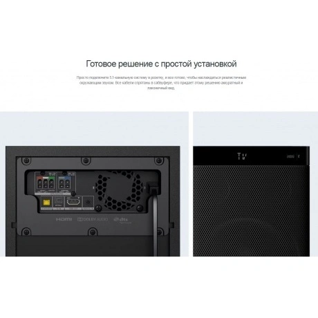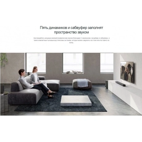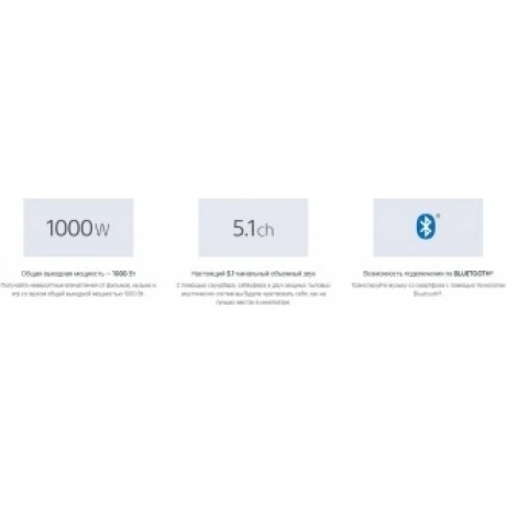 5.1-канальная система с функцией реалистичного окружающего звука позволит вам насладиться оригинальным звучанием саундтреков. Этот 3-канальный саундбар передает глубокий окружающий звук при воспроизведении фильмов и музыки с помощью проводной тыловой акустической системы и внешнего сабвуфера.