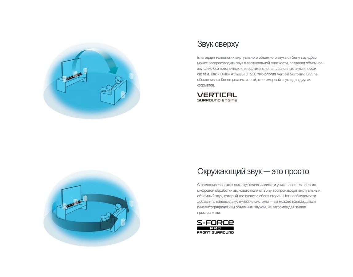 Vertical Surround Engine — новейшая технология окружающего звука, которая позволяет воспроизводить форматы Dolby Atmos и DTS:X без сложного и дорогостоящего оборудования. Независимо от особенностей помещения, технология DSP позволяет при помощи лишь двух динамиков создавать виртуальный объемный звук, который, кажется, раздается отовсюду, в том числе сверху.