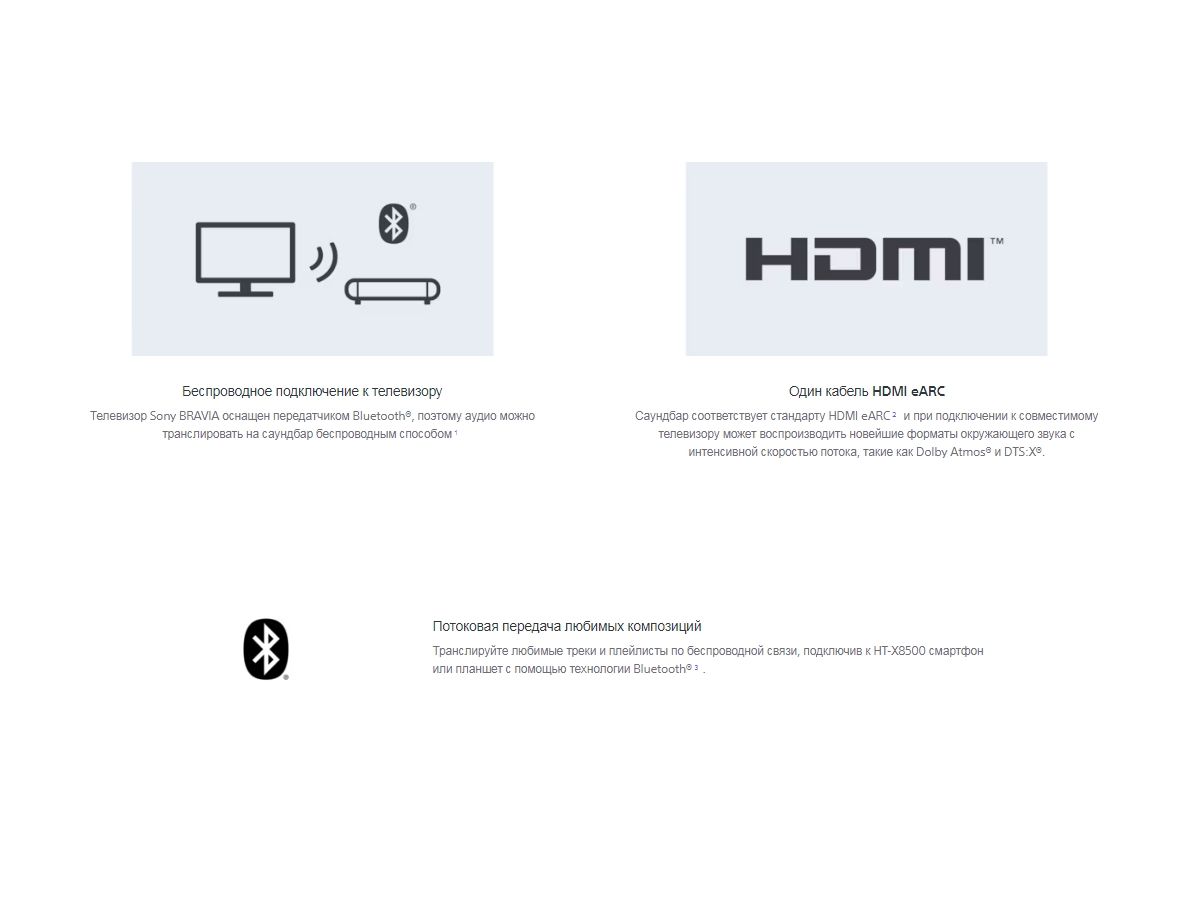 Саундбар Sony HT-X8500 - характеристики, описание товара, фото и цены представлены на карточке товара. Этот товар вы можете купить по цене 31060 руб., позвонив по телефону 8(495)137-52-98 в Москве, или оформив покупку через корзину.
